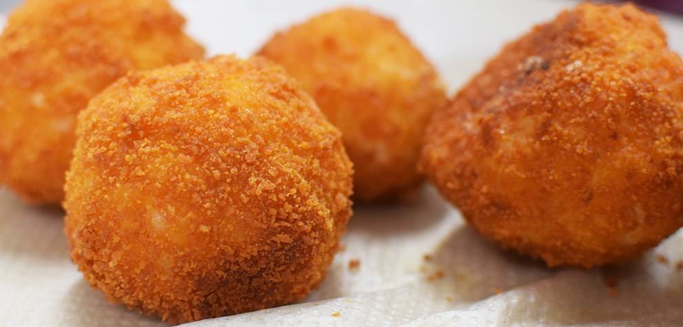 - Arancini with Mozzarella, anchovies and tomato coulis