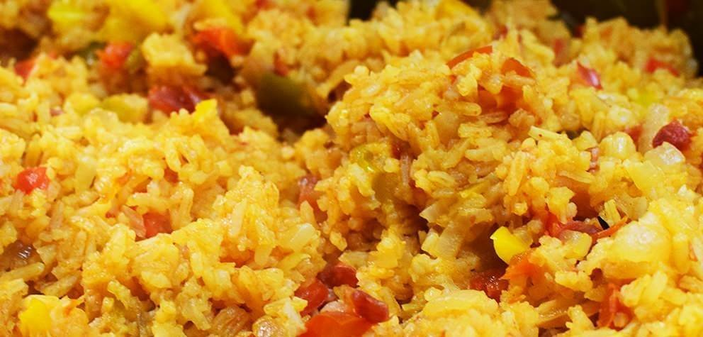 - Red rice with tomatoes and smoked pepper
